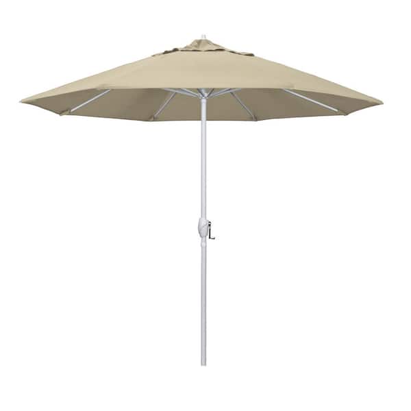 9 ft. Matted White Aluminum Market Patio Umbrella Auto Tilt in Antique Beige Sunbrella
