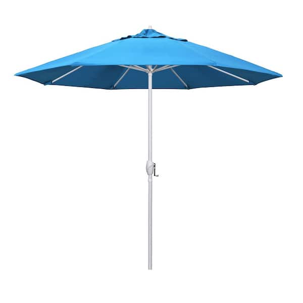 9 ft. Matted White Aluminum Market Patio Umbrella Auto Tilt in Canvas Cyan Sunbrella