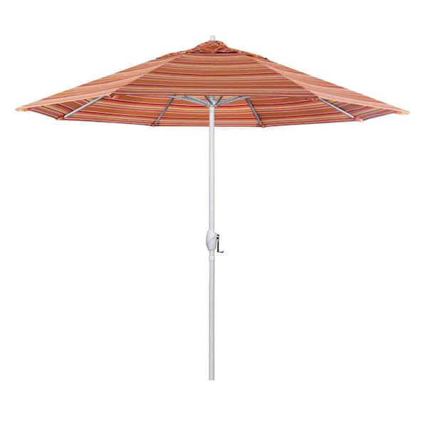 9 ft. Matted White Aluminum Market Patio Umbrella Auto Tilt in Dolce Mango Sunbrella