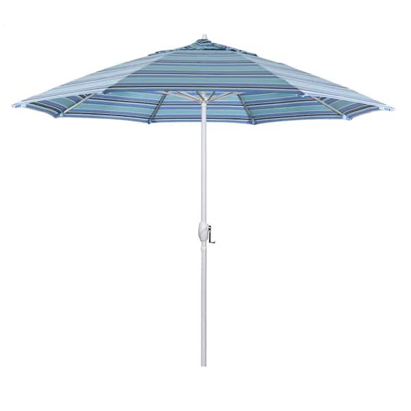 9 ft. Matted White Aluminum Market Patio Umbrella Auto Tilt in Dolce Oasis Sunbrella