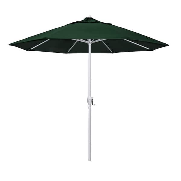 9 ft. Matted White Aluminum Market Patio Umbrella Auto Tilt in Forest Green Sunbrella