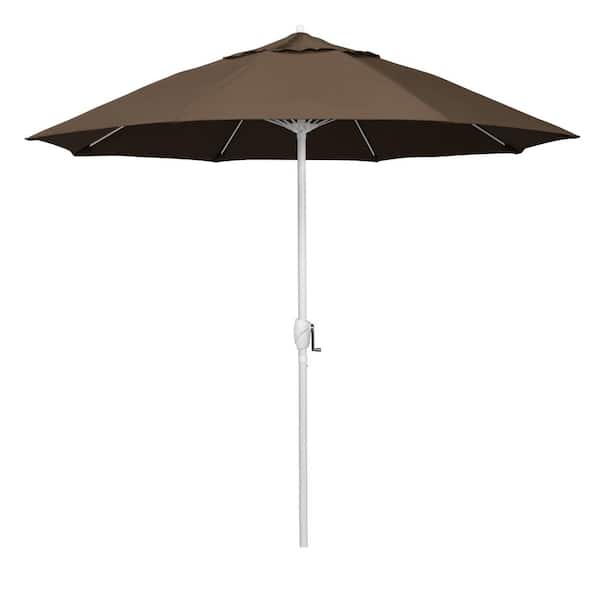 9 ft. Matted White Aluminum Market Patio Umbrella Fiberglass Ribs and Auto Tilt in Cocoa Sunbrella