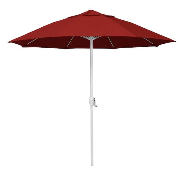 9 ft. Matted White Aluminum Market Patio Umbrella Fiberglass Ribs and Auto Tilt in Jockey Red Sunbrella
