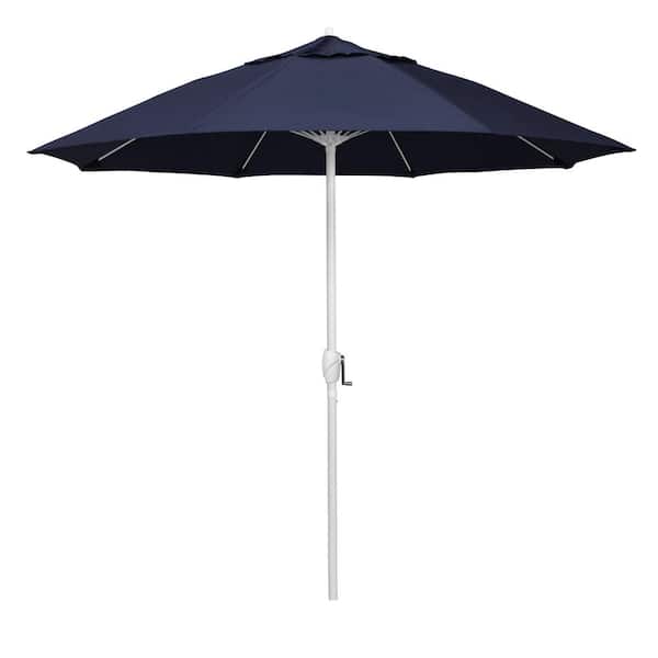 9 ft. Matted White Aluminum Market Patio Umbrella Fiberglass Ribs and Auto Tilt in Navy Blue Sunbrella