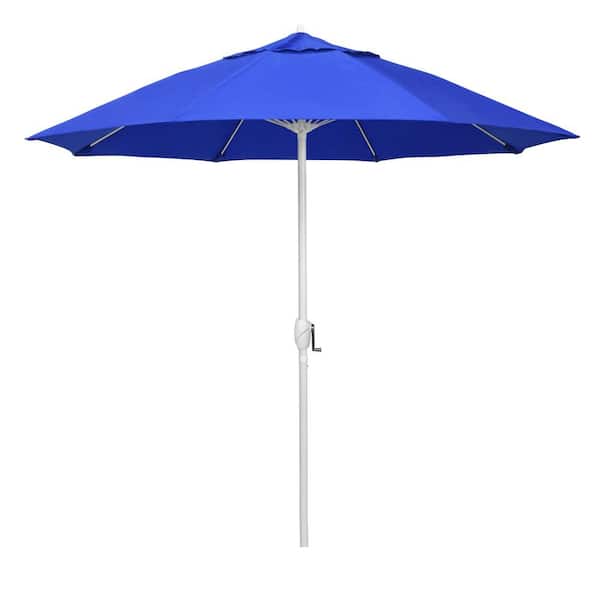 9 ft. Matted White Aluminum Market Patio Umbrella Fiberglass Ribs and Auto Tilt in Royal Blue Olefin