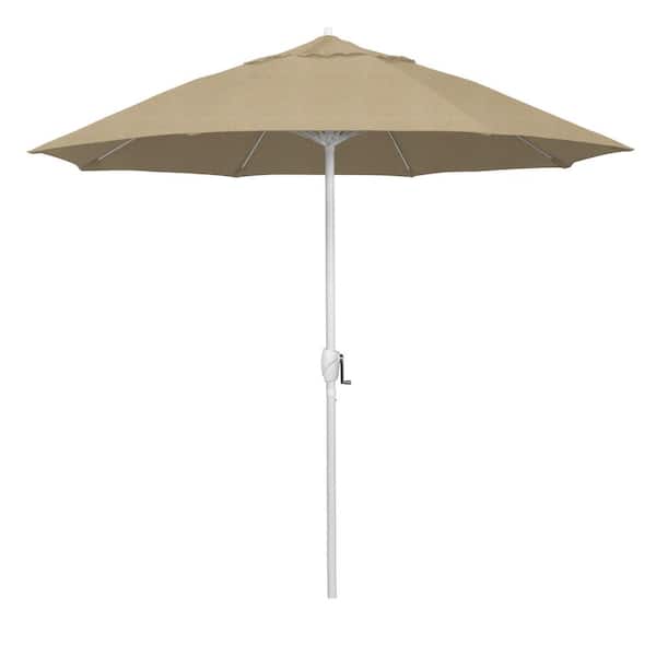9 ft. Matted White Aluminum Market Patio Umbrella Fiberglass Ribs and Auto Tilt in Wheat Sunbrella