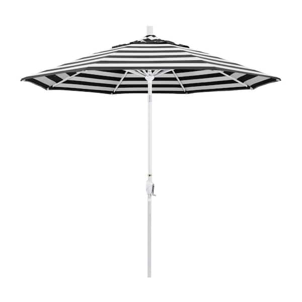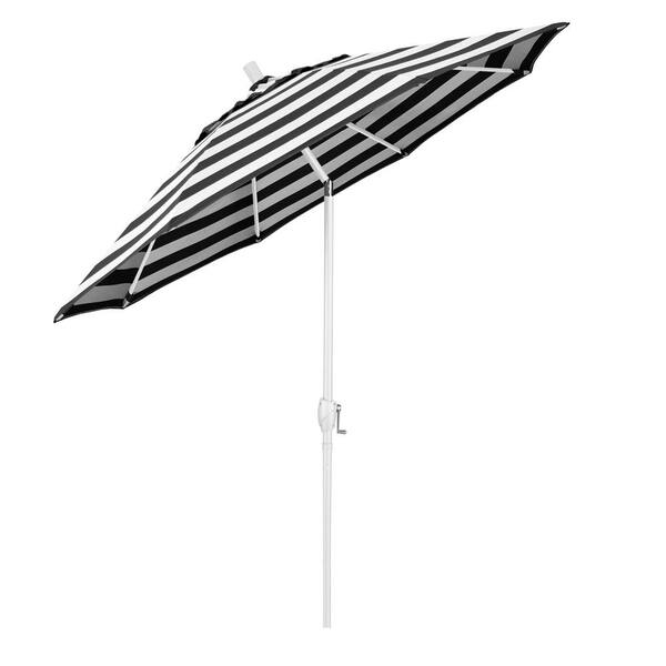 9 ft. Matted White Aluminum Push Button Tilt Crank Lift Market Patio Umbrella in Cabana Classic Sunbrella
