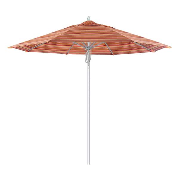 9 ft. Silver Aluminum Commercial Fiberglass Ribs Market Patio Umbrella and Pulley Lift in Dolce Mango Sunbrella