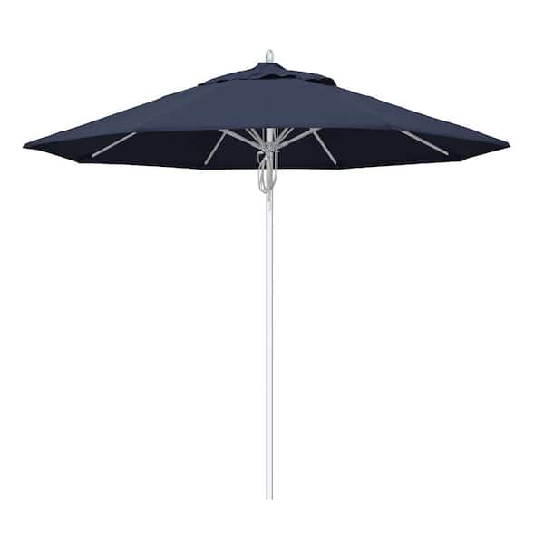 9 ft. Silver Aluminum Commercial Fiberglass Ribs Market Patio Umbrella and Pulley Lift in Spectrum Indigo Sunbrella