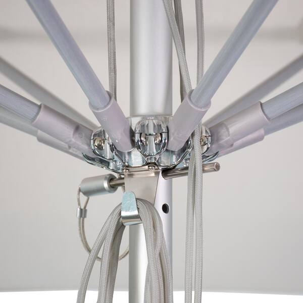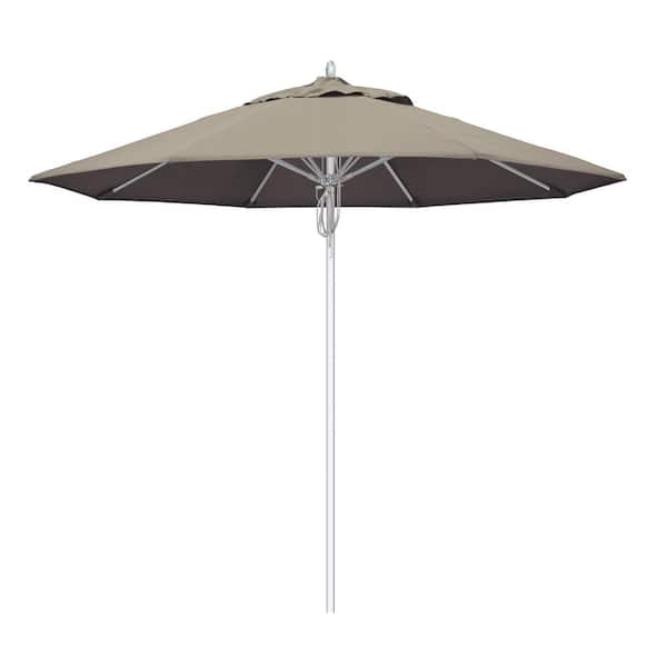 9 ft. Silver Aluminum Commercial Fiberglass Ribs Market Patio Umbrella and Pulley Lift in Taupe Sunbrella