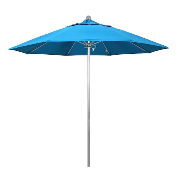 9 ft. Silver Aluminum Commercial Market Patio Umbrella with Fiberglass Ribs and Push Lift in Canvas Cyan Sunbrella
