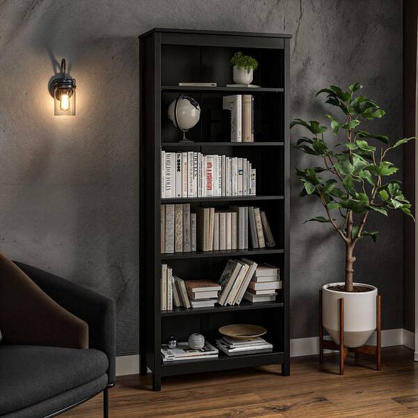 Shaker Style Black 72 in. Tall Solid Wood Bookcase