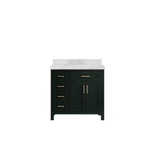 Cambridge 36 in. W x 22 in. D x 36 in. H Center Sink Bath Vanityin Dark Green with 2 in. Calacatta Nuvo Top