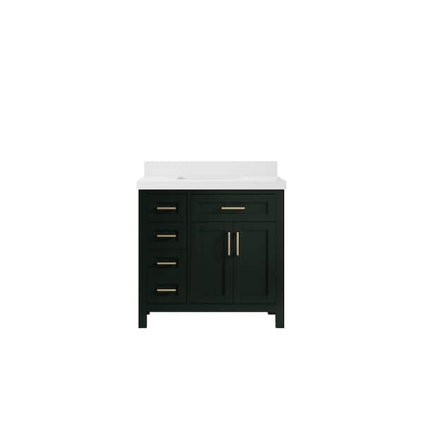 Cambridge 36 in. W x 22 in. D x 36 in. H Center Sink Bath Vanityin Dark Green with 2 in White Quartz Top