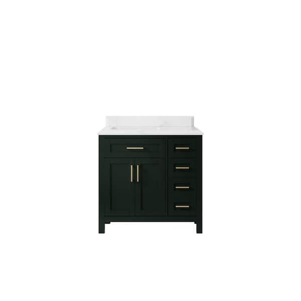 Cambridge 36 in. W x 22 in. D x 36 in. H Left Offset Sink Bath Vanity in Dark Green with Cove Edge Empira Quartz Top