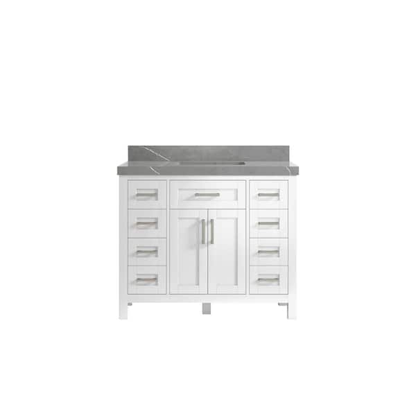 Cambridge 42 in. W x 22 in. D x 36 in. H Bath Vanity in White with 2 in Piatra Gray Quartz Top