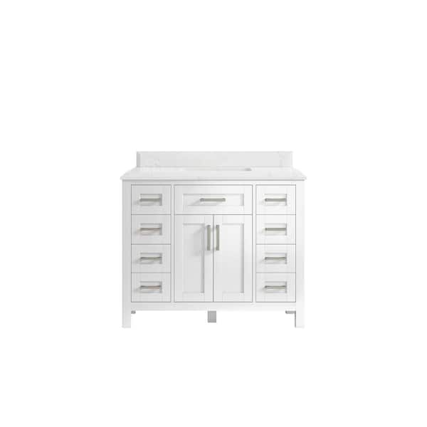 Cambridge 42 in. W x 22 in. D x 36 in. H Bath Vanity in White with Cove Edge Empira Quartz Top