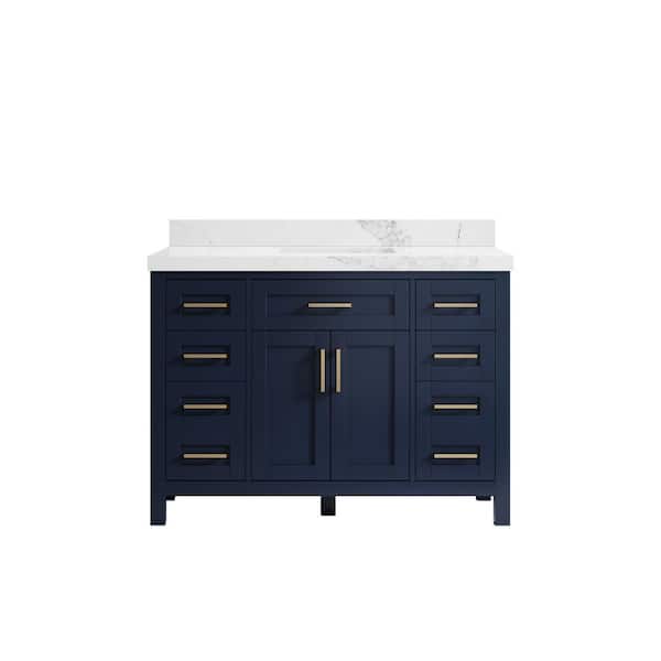 Cambridge 48 in. W x 22 in. D x 36 in. H Bath Vanity in Hale Navy Blue with 2 in Calacatta Nuvo Quartz Top