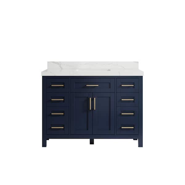 Cambridge 48 in. W x 22 in. D x 36 in. H Bath Vanity in Hale Navy Blue with 2 in Calacatta Quartz Top