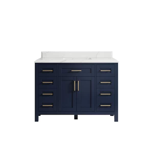 Cambridge 48 in. W x 22 in. D x 36 in. H Bath Vanity in Navy Blue with Cove Edge Calacatta Quartz Top