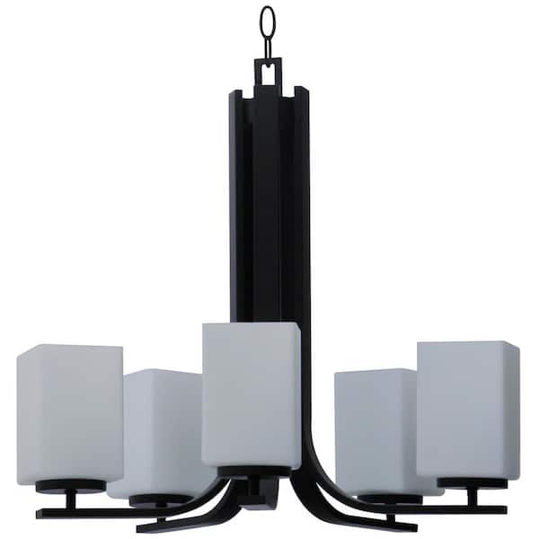 5-Light Ebony Bronze Chandelier Etched Dove White Glass Shade