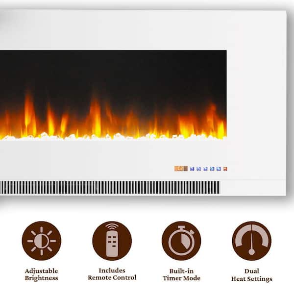 50 in. Wall-Mount Electric Fireplace in White with Multi-Color Flames and Crystal Rock Display