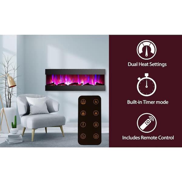 60 in. Wall Mounted Electric Fireplace with Logs and LED Color Changing Display in Black