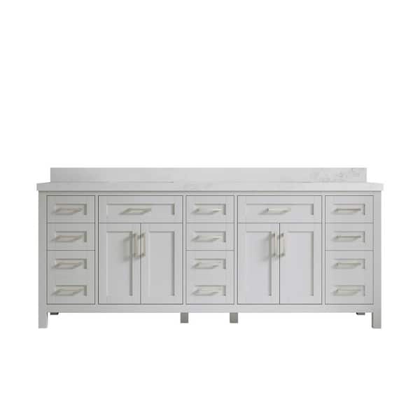 Cambridge 84 in. W x 22 in. D x 36 in. H Double Sink Bath Vanity in Gray with 2 in Calacatta Nuvo Quartz Top