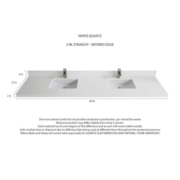 Cambridge 84 in. W x 22 in. D x 36 in. H Double Sink Bath Vanity in Pewter Green with 2 in White Quartz Top