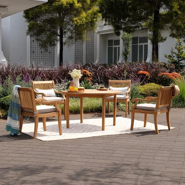 Cambridge Casual Mosko 5-Piece Teak Wood Outdoor Dining Set with Beige Cushion