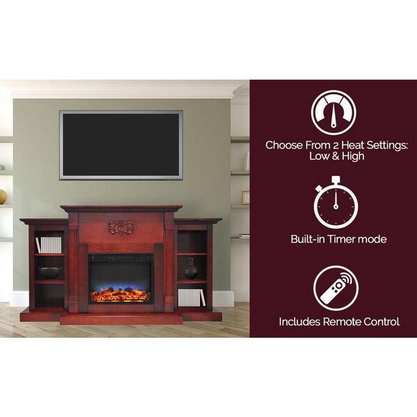 Sanoma 72 in. Electric Fireplace in Cherry with Bookshelves and a Multi-Color LED Flame Display