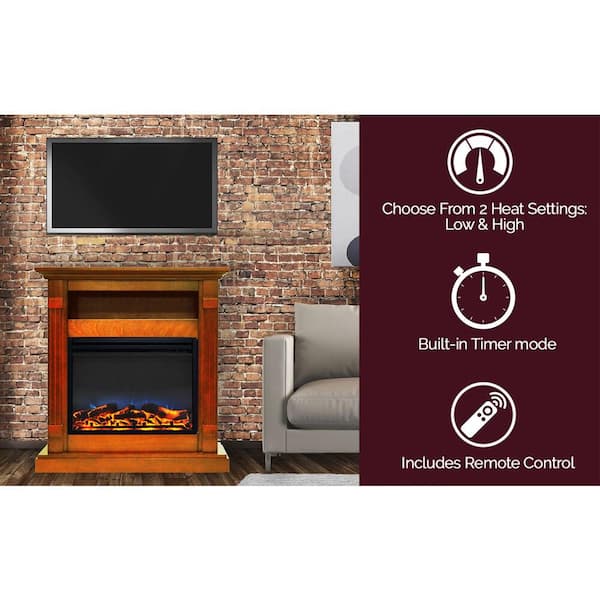 Sienna 34 in. Freestanding Electric Fireplace with Storage Shelf and LED Multicolor Flame Insert with Logs in Teak