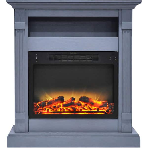 Sienna 34 in. Freestanding Electric Fireplace with Storage Shelf plus Logs and Grate Insert in Slate Blue