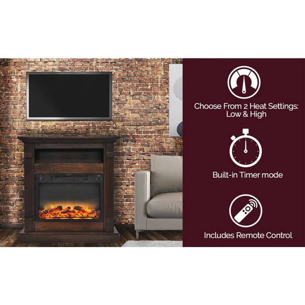 Sienna 34 in. Freestanding Electric Fireplace with Storage Shelf plus Logs and Grate Insert in Walnut