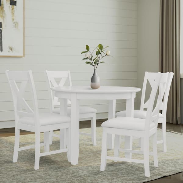 Kendal 5-Piece Round White Wood Top Dining Room Set Seats-4
