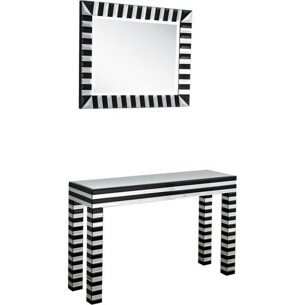 Waves 14 in. Black Rectangular Glass Console Table with Mirror