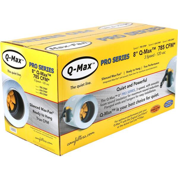Pro Series 8 in. 785 CFM Silenced Max Fan with 3 Speeds and Acoustic Foam Sound Insulation for Growing Environments