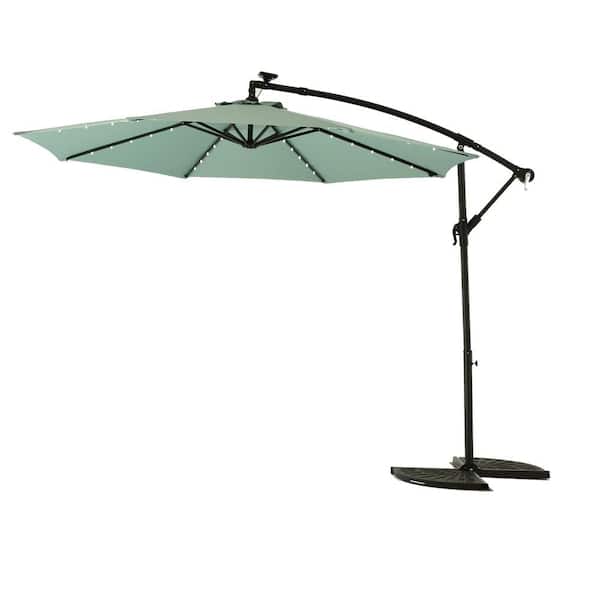 Cantilever Umbrella, 10 ft. Powder Coated Steel Cantilever Solar LED Offset Hanging Patio Umbrella in Light Green