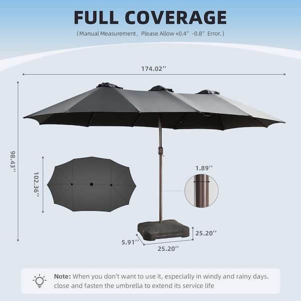 15 ft. Metal Market Rectangle Outdoor Patio Umbrella in Black with Stand for Poolside Bench Backyard Garden