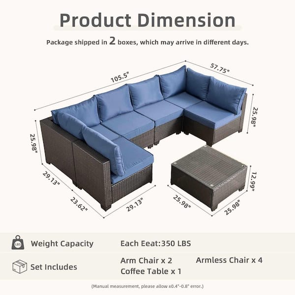 Sirela Black 7‑Piece All-Weather PE Wicker Outdoor Sectional Sofa Set Patio Conversation Set with Blue Cushions for Deck