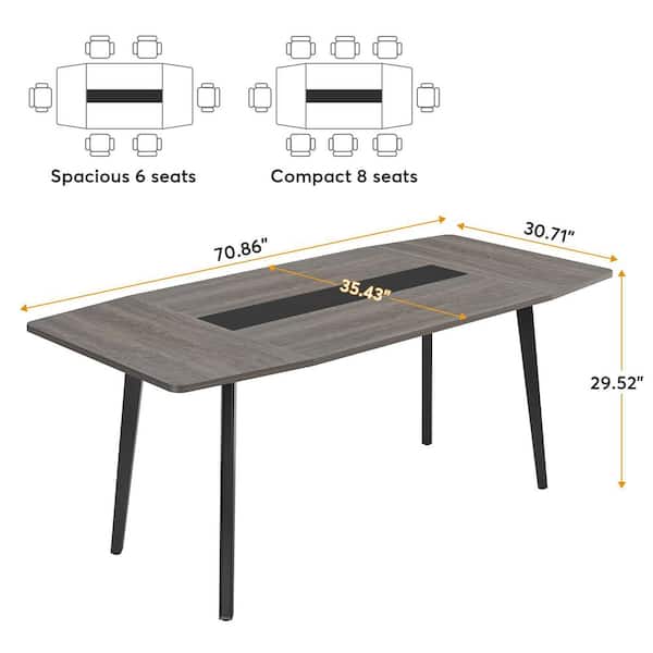 Capen 70.8 in. Rectangular Gray Engineered Wood Computer Desk Conference Table 6 ft. Meeting Table