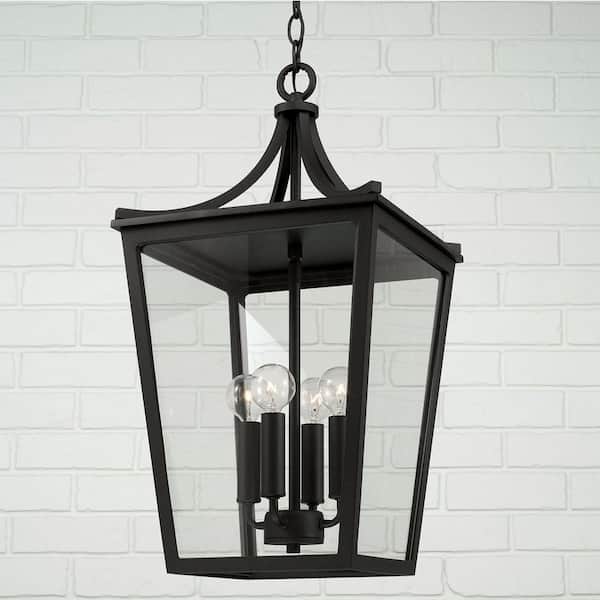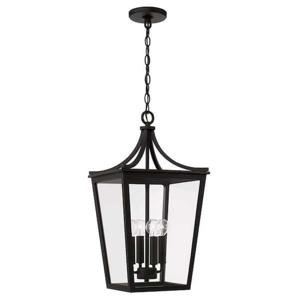 Adair 12 in. W x 23 in. H 4-Light Black Outdoor Pendant Light with Clear Glass and No Bulbs Included