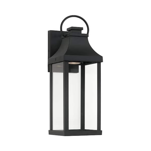 Bradford 17 in. Black Outdoor Hardwired Night Sky Small Wall Lantern Sconce with Clear Glass and No Bulbs Included