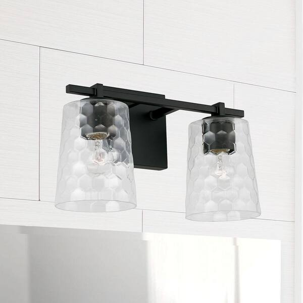 Burke 14.5 in. W x 8.5 in. H x 6 in. E 2-Light Matte Black Vanity Light with Clear Honeycomb Glass