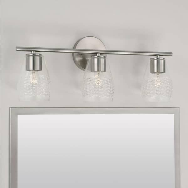 Dena 23 in. W x 9.5 in. H 3-Light Vanity Light in Brushed Nickel with Diamond Embossed Glass