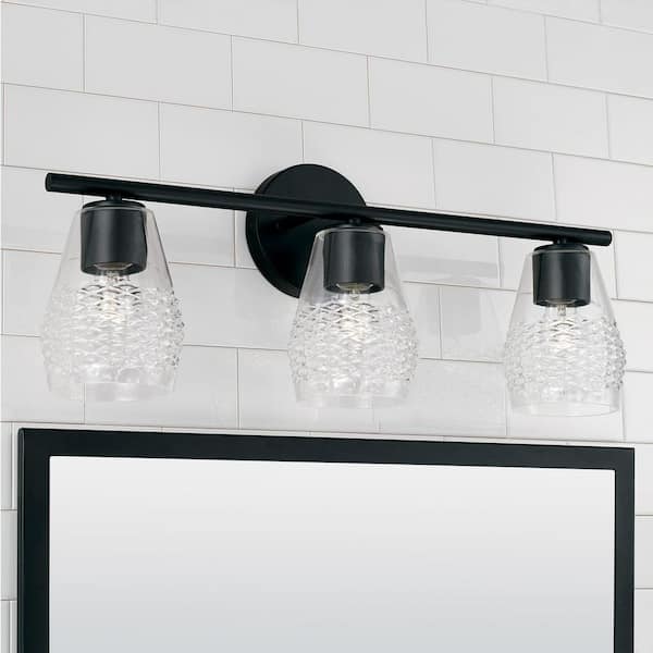 Dena 23 in. W x 9.5 in. H 3-Light Vanity Light in Matte Black with Diamond Embossed Glass