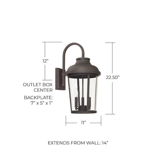 Dunbar 11 in. W x 22.5 in. H 3-Light Clear Glass Outdoor Wall Lantern in Oiled Bronze