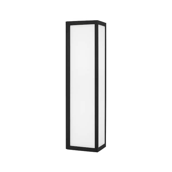 Irvin 22.5 in. Black with Painted White Glass Outdoor Hardwired Wall Lantern Sconce with Integrated LED Bulb