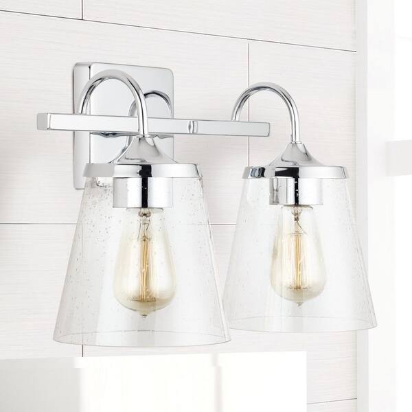 Jayne 15 in. W x 10.5 in. H x 9 in. E 2-Light Chrome Vanity Light with Clear Seeded Cone Glass Shades