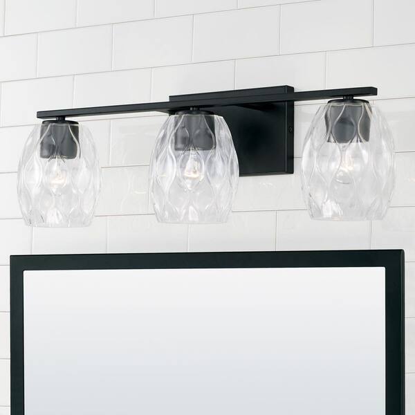 Lucas 24 in. W x 8 in. H 3-Light Matte Black Vanity Light with Wavy Embossed Glass